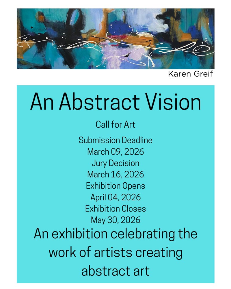 Call for Submissions, Exhibition, UpcomingAn Abstract VisionApril 4 - May 30, 2026An Abstract Vision celebrates the work of artists creating abstract art.read more ...