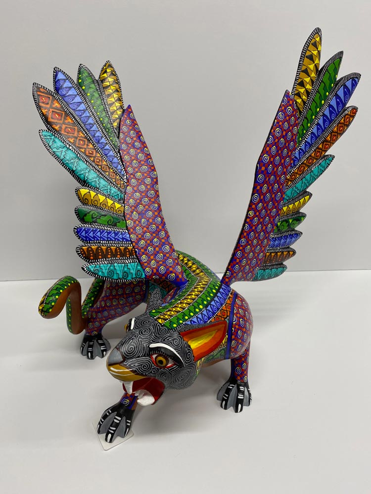 We design and craft alebrijes in the form of paintings, wooden sculptures, hats, bookshelves, fireplaces and many more types of art that is meticulously painted by hand by Irma Rodríguez. Irma first began painting as a little girl when her parents started an alebrije business, therefore she has learned the family business and craftsmanship that is inspired by her heritage growing up in Oaxaca, Mexico.